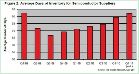近日消息,據(jù)IHS iSuppli公司的研究,第一季度的過多半導(dǎo)體庫存,幫助半導(dǎo)體產(chǎn)業(yè)避免了組件嚴重短缺。最初人們擔(dān)憂,日本地震與海嘯會帶來嚴重的組件短缺問題。