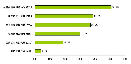 通過對替代方式的調查發(fā)現,不同品牌物料之間的替換成為2010年使用替代物料的最主要方式,而2009年的調查結果中廠商新老產品替換占據主流。替代方式側重點的變化也反映了供應鏈中物料品牌替換比較活躍,這為新的品牌供應商切入市場提供了機會。那么工程師如何獲得品牌替代信息呢?通過調查發(fā)現,使用在線工具是尋找物料品牌替代信息成為新寵。在線工具包括供應商網站的選型工具、目錄分銷商的搜索工具、供應商替代搜索工具。此外,技術文章也是影響工程師選擇的重要方式,而技術文章恰恰是國內元器件供應商的短板。