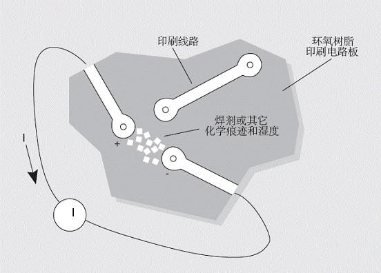 這些污染的主要結(jié)果是降低絕緣電阻。在高濕度和離子污染的雙重作用下,還能形成導(dǎo)電通路,甚至可以形成具有高串聯(lián)電阻的化學(xué)電池。這種情況下形成的電池能夠在很長的時(shí)期內(nèi)輸出皮安或納安級的電流。