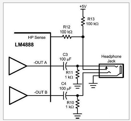 基于每個(gè)耳機(jī)檢測(cè)電路端口設(shè)計(jì)會(huì)採(cǎi)用不同要求,因此,該聲頻子系統(tǒng)提供兩個(gè)獨(dú)立的耳機(jī)(HP)控制輸入接腳。耳機(jī)的允許輸入可啟動(dòng)SE輸出耳機(jī)模式和關(guān)閉BTL輸出模式。耳機(jī)感應(yīng)檢測(cè)輸入需要用一個(gè)常規(guī)立體聲耳機(jī)插孔配合一起使用。剩余的HP邏輯輸入,能允許使用一個(gè)標(biāo)準(zhǔn)邏輯電平(Logic Level)來(lái)控制。