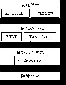 在進行向標準 C代碼的轉換的過程中,可以根據(jù)需要加入符合OSEK規(guī)范的嵌入式實時操作系統(tǒng)。在代碼生產(chǎn)階段使用的主要工具是CodeWarrior。通過使用CodeWarrior提供的編譯器、調試器等工具,完成從標準C代碼向目標硬件平臺上的產(chǎn)品代碼的轉換工作。下圖表示了汽車電子產(chǎn)品的代碼生成過程。
