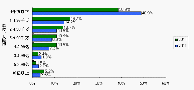 此外,IC和電子元器件的平均采購(gòu)額由2010調(diào)查的1.02億增加至2011調(diào)查的1.15億,增加12.7%。采購(gòu)總額在1億人民幣以上的系統(tǒng)廠商由2010調(diào)查的17.5%增加至2011調(diào)查的20.1%,大中型企業(yè)表現(xiàn)出成長(zhǎng)。采購(gòu)總額在1千萬(wàn)以下的系統(tǒng)廠商由2010調(diào)查的48.9%降至2011調(diào)查的38.6%,小微型企業(yè)由于經(jīng)營(yíng)困難或缺貨沖擊而倒下。