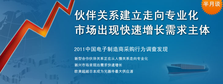 缺貨危機(jī)過(guò)后,中國(guó)電子系統(tǒng)制造商和電子元器件供應(yīng)商對(duì)風(fēng)險(xiǎn)共擔(dān)、利益共享的伙伴關(guān)系有了新的理解。 2011中國(guó)電子制造商采購(gòu)行為調(diào)查發(fā)現(xiàn),在供應(yīng)商認(rèn)證與引入過(guò)程中建立了系統(tǒng)流程并很好實(shí)施的比例顯著增加;讓供應(yīng)商參與早期產(chǎn)品設(shè)計(jì)的比例顯著增加;培養(yǎng)供應(yīng)商的比例顯著增加。合作伙伴關(guān)系建立正在從人情關(guān)系走向更加專業(yè)化和系統(tǒng)化。此外,新興市場(chǎng)在新型伙伴關(guān)系基礎(chǔ)上呈現(xiàn)出需求快速增長(zhǎng)。