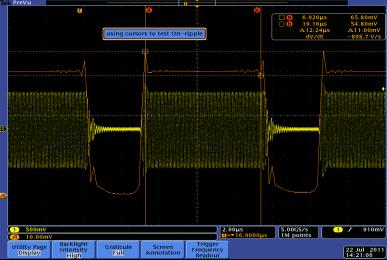 另一個(gè)需要嚴(yán)格保證的時(shí)間是從讀寫(xiě)器發(fā)出讀卡信號(hào)后到標(biāo)簽返回信號(hào)的時(shí)間。過(guò)長(zhǎng)或過(guò)短的時(shí)間都會(huì)被認(rèn)作讀寫(xiě)失敗。使用傳統(tǒng)儀器測(cè)量這些信號(hào)的難度很大。MDO4000可以將RF信號(hào)的AvsT的軌跡完整展示的屏幕中,用戶只需用光標(biāo)定位到相應(yīng)位置,即可得到這一延遲時(shí)間。