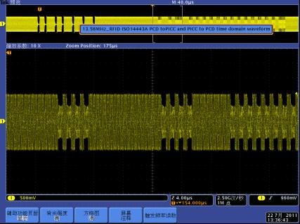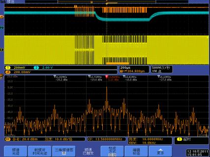 下面我們以一個(gè)13.56MHz的RFID讀寫(xiě)器系統(tǒng)為例,介紹MDO4000的跨域調(diào)試應(yīng)用。