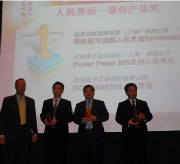 11月2日,在上海工博會期間召開的“創(chuàng)新 未來”2011(第七屆)CEC年度最佳產(chǎn)品獎評選頒獎典禮上,臺達(dá)人機(jī)“高手”——DOP-B08E515以其高分辨率、高容量、高畫質(zhì)、高速度、高抗干擾能力等多項(xiàng)優(yōu)秀技術(shù)性能指標(biāo)在百余自動化產(chǎn)品的激烈角逐中脫穎而出,榮獲“2011年度最佳產(chǎn)品獎”!