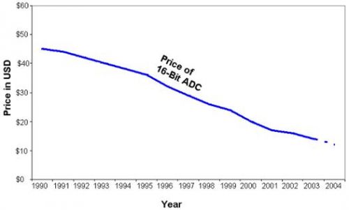 圖9 16-位模數(shù)轉(zhuǎn)換器的價格下降曲線