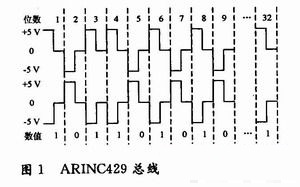ARINCA29總線是一種單向廣播式數(shù)據(jù)總線,采用雙角屏蔽線傳輸信息,可由兩根獨立總線實現(xiàn)雙向傳輸,數(shù)據(jù)傳輸率為:高速傳輸?shù)奈凰俾蕿?00 Kb/s±1%,低速傳輸?shù)奈凰俾蕿?12.0~14.5)Kb/s±1%。ARINC429規(guī)定數(shù)據(jù)傳輸采用雙極性歸零制的三態(tài)碼方式,如圖1所示,即調(diào)制信號由“高”、“零”和“低”狀態(tài)組成的三電平狀態(tài)。雙極性歸零碼的基本信號波形中攜帶了位同步信息,位同步是由零狀態(tài)變至“高”或“低”狀態(tài)的這一狀態(tài)變化來識別。字同步是以傳輸周期間至少有四個位時的時間間隔為基準(zhǔn),緊跟該字間隔后要發(fā)送的第一位起點即為新字的起點。