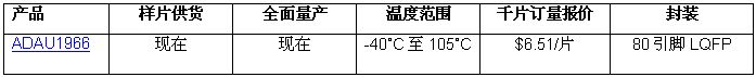 ADAU1966已經(jīng)通過(guò)AEC-100汽車應(yīng)用認(rèn)證,工作溫度范圍為-40° C至+105° C。它還提高SPI/I2C端口,允許外部微控制器調(diào)節(jié)音量,并以+/-3°C的精度讀取芯片溫度。