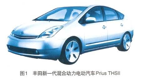 以作為混合動力電動汽車研發(fā)前沿的豐田汽車公司為例,所開發(fā)的混合動力電動汽車已達到實用化水平,自1997年所推出的世界上第一款批量生產的混合動力電動汽車Prius開始,其后又在2002年推出了混合動力面包車,該車混合動力系統(tǒng)采用了世紀首次批量生產的電動四輪驅動及四輪驅動力/制動力綜合控制系統(tǒng)。2003年,豐田又推出了新一代Prius,也被稱為“新時代豐田混合動力系統(tǒng)——THS Ⅱ”(見圖1),節(jié)能效果可達到100km油耗不足3L。從2004年開始,豐田公司向歐洲市場推出了一款新的Lexus RX型豪華混合動力轎車。豐田公司計劃2012年全部采用汽油電力混合發(fā)動機,以提高燃油經濟性和降低排放污染。
