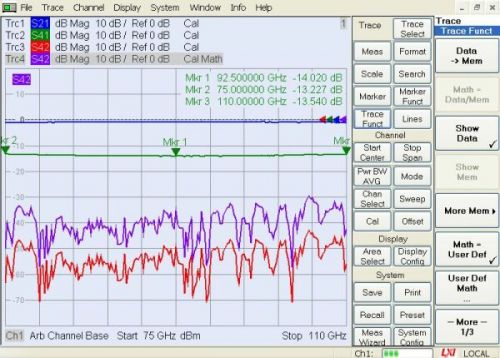 圖3顯示了利用混頻器的作用R&S ZVA24矢量網(wǎng)絡(luò)分析儀和兩個(gè)R&S ZVA-Z110變頻模塊測量90GHz帶通濾波器的全部設(shè)置測量具有高抑制特性的濾波器要求很高的動(dòng)態(tài)范圍R&S ZVA-Z110變頻模塊樹立了新的動(dòng)態(tài)范圍標(biāo)準(zhǔn),其典型值>110dB,可以輕松滿足測量濾波器時(shí)的高動(dòng)態(tài)要求這樣,用戶可以增加測量帶寬,如增加到1kHz,以獲得更高的測量速度