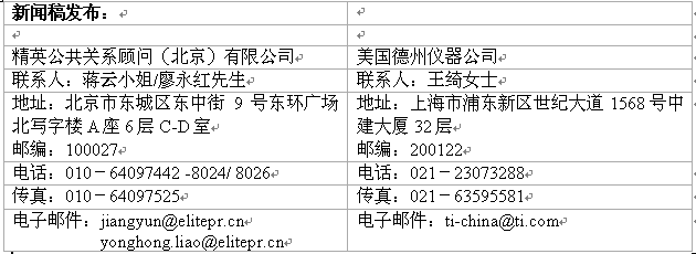 德州儀器 (TI) 半導(dǎo)體創(chuàng)新技術(shù)為未來(lái)世界開(kāi)啟無(wú)限可能。攜手全球 80,000 家客戶,TI致力打造更智能、更安全、更環(huán)保、更健康以及更精彩的生活。TI把構(gòu)建美好未來(lái)的承諾付諸于日常言行的點(diǎn)滴,從高度負(fù)責(zé)地生產(chǎn)半導(dǎo)體產(chǎn)品,到關(guān)愛(ài)員工、回饋社會(huì)。這一切僅是 TI 實(shí)踐承諾的開(kāi)始。TI 在納斯達(dá)克交易所上市交易,交易代碼為 TXN。TI 半導(dǎo)體產(chǎn)品信息中心免費(fèi)熱線電話:800-820-8682。