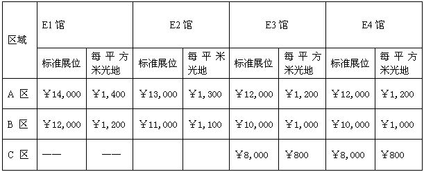 (A) 標(biāo)準(zhǔn)展位(每個標(biāo)準(zhǔn)展位為3米×3米=9平方米) 標(biāo)準(zhǔn)展位設(shè)施配備為:三面鋁合金圍板、滿鋪地毯、兩只射燈、兩把折椅,一張問詢桌和一個220V/500W的電源插座,楣板上書中英文公司名稱。單個拐角位置展位費(fèi)增加10%