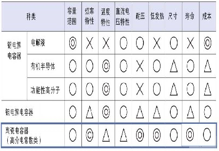 本圖顯示了各種電容器的產(chǎn)品范圍。片狀獨(dú)石陶瓷電容器迅速向大容量化方向推進(jìn),其范圍逐漸擴(kuò)大。而鋁電解電容器和鉭電解電容器也在努力向高耐壓化和大容量化方向發(fā)展,以追趕片狀獨(dú)石陶瓷電容器?! ?br />