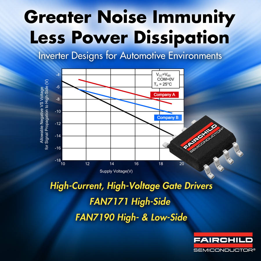 FAN7171和FAN7190 HVIC器件提供了集成式逆變器解決方案,在嚴(yán)苛的汽車應(yīng)用中提供更高效率、更大驅(qū)動電流和更高穩(wěn)健性。