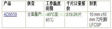 AD9559時(shí)鐘轉(zhuǎn)換器尺寸為10 mm x 10 mm,便于線(xiàn)路卡設(shè)計(jì)人員獲得緊湊、頻率捷變、高性?xún)r(jià)比的時(shí)鐘。適合的應(yīng)用包括數(shù)據(jù)通信、新一代有線(xiàn)網(wǎng)絡(luò)應(yīng)用、測(cè)試和測(cè)量、高速數(shù)據(jù)采集、視頻應(yīng)用以及無(wú)線(xiàn)基站控制器。