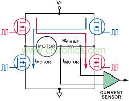 圖2. 典型H橋電機控制中的高端檢測
