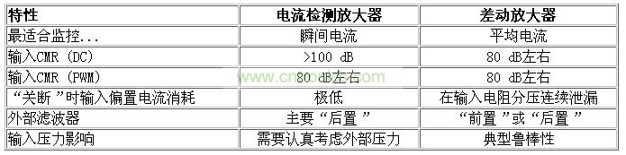 顯而易見,雖然電流檢測放大器和差動放大器工作方式不同,卻履行同樣的功能。差動放大器將高輸入電壓衰減,使信號達到放大器可以接受的電平。電流檢測放大器將差分輸入電壓轉換為電流,然后再轉換至以地為參考的電壓;其輸入放大器因采用高壓制作工藝,能承受高共模電壓,。毫無疑問,兩個架構的不同將導致其性能差異,設計工程師在選擇高端電流檢測解決方案時必須考慮這些性能差異。通常,廠商的數(shù)據(jù)手冊已提供了大部分信息,可根據(jù)精度、速度、功耗及其他參數(shù)對器件的類型做出正確判斷。然后,器件架構內(nèi)在的某些重大差異是無法在數(shù)據(jù)手冊中立刻發(fā)現(xiàn)的,但這些也是非常重要的設計考慮事宜。下面給出了一些工程師在實現(xiàn)最佳解決方案時必須考慮的關鍵點。