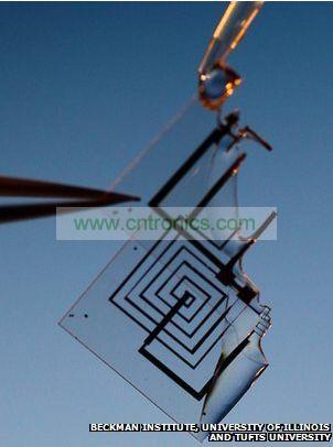 問題是傳統(tǒng)電子器件的原件尺寸意味著它很難融化。研究人員使用了一種名為納米薄膜的超薄硅板,這種材料能夠在數(shù)天或者數(shù)周內(nèi)融化。溶解的速度是由桑蠶絲控制的,桑蠶絲被溶解然后進(jìn)行了改良。通過改變桑蠶絲的結(jié)晶方式來改變它的特性,從而控制電子器件的持久時(shí)間。
