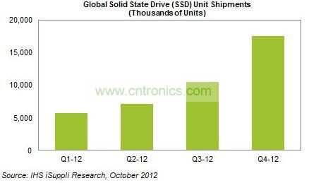 據(jù)IHS iSuppli提供的數(shù)據(jù),SSD上半年全球出貨量共計1290萬塊,而第三季度單季就達到了1050萬塊,并在第四季度提升到1750萬塊。也就是說,下半年的出貨量將達到上半年的兩倍以上。