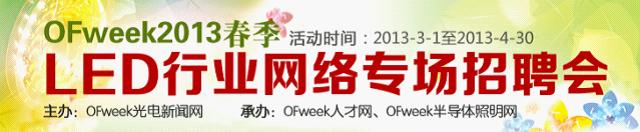 導讀:新年招聘旺季序幕已經(jīng)拉開,您是否正在茫茫人海大潮中苦尋理想職位?或意欲辭職蠢蠢欲動?新年伊始,OFweek為你推薦LED行業(yè)的好工作!3月1號~4月30日,由中國高科技行業(yè)綜合門戶網(wǎng)站-OFweek主辦,OFweek人才網(wǎng)、OFweek半導體照明網(wǎng)承辦的“OFweek2013春季LED行業(yè)網(wǎng)絡(luò)專場招聘會”日前啟動。
