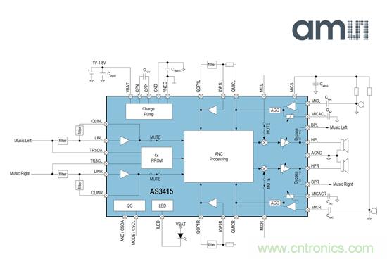 圖3:ams推出AS3415主動降噪揚聲器驅(qū)動芯片