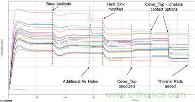 為提升整體設(shè)計(jì)做出調(diào)整,如產(chǎn)品的機(jī)械、電氣和 EMC 性能間的協(xié)調(diào)以及溫度限制、可制造性或成本等其他限制條件,有利于實(shí)現(xiàn)連續(xù)改進(jìn)。對(duì)每個(gè)學(xué)科而言,這些改進(jìn)可以看作是對(duì)基礎(chǔ)設(shè)計(jì)的完善。在進(jìn)行熱設(shè)計(jì)時(shí),則可視為對(duì)監(jiān)控點(diǎn)溫度的調(diào)整,從而與將用作測(cè)量物理原型的傳感器的位置相匹配。