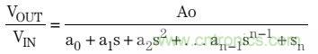 巴特沃茲濾波器傳輸函數(shù)包括所有極點,并且沒有零,其表達(dá)式如下: