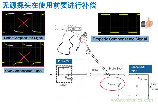 其實(shí)把示波器遞減掉,只是把示波器參考點(diǎn)放在你的機(jī)殼,示波器的電源有一個(gè)外電源,這個(gè)外電源是兩個(gè)電源串聯(lián),中間接到220伏的,地減之后,示波器本身不是這個(gè)概念的地。但是很多時(shí)候因?yàn)槭静ㄆ髡嬲槿氲讲遄系牡?,不是概念上的地,很多時(shí)候再做一個(gè)接口會更好。任何的測量都是差度測量。因此我們要記住,所有問題都是線纜的問題。探頭的問題解決幾個(gè)問題,第一個(gè)是傳導(dǎo),第二個(gè)是輻射,這個(gè)是所有問題的本質(zhì)。我們在使用的時(shí)候,要盡可能的減少地環(huán)的地,第二個(gè)是盡可能讓探頭遠(yuǎn)離輻射源和干擾源。還有一點(diǎn),我們知道任何一個(gè)探頭,我們希望輸出電源越小越好,但是找不到這樣的探頭,一個(gè)探頭可以達(dá)到10兆歐姆,但是交易質(zhì)量非常多,測量結(jié)果非常大,因?yàn)闀央娐防瓕?。因?yàn)樘筋^本質(zhì)上是你的探頭的等效電路,并聯(lián)在電路上面,會吸收電,打垮電路。大家要注意這個(gè)影響。