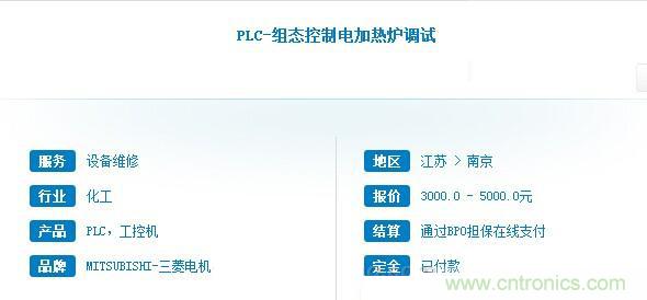 該項目由電加熱爐設(shè)備制造商發(fā)起,為該企業(yè)某型號的電加熱爐提供電氣控制開發(fā),具體由PLC作為控制主體,結(jié)合工藝需求完成編程和組態(tài)設(shè)計,后期完成儀表接線和調(diào)試工作,工作周期30天。該活兒經(jīng)過3天發(fā)布后,接到17名工程師的投標方案,最終由周邊某市的一名gongkongBPO工程師承接完成。