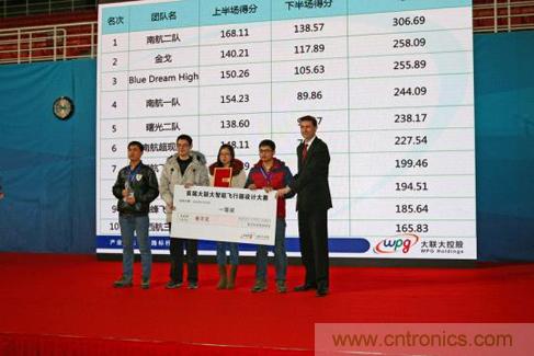 本次大賽評(píng)審委員會(huì)由大聯(lián)大、白金級(jí)贊助商恩智浦(NXP)和行業(yè)內(nèi)專家共同組成,經(jīng)過對(duì)所有參賽飛行器軟硬件架構(gòu)、外觀設(shè)計(jì)、現(xiàn)場(chǎng)飛行平穩(wěn)度和精準(zhǔn)度等方面的綜合考量,來自南京航空航天大學(xué)南航二隊(duì)參賽隊(duì)的四軸飛行器凌空號(hào)作品表現(xiàn)優(yōu)異,以306.69的總分最終獲得了本屆大賽的總冠軍。北京科技大學(xué)的金戈參賽隊(duì)和鄭州航空工業(yè)管理學(xué)院的Blue Dream High參賽隊(duì)分別獲得了亞軍和季軍。