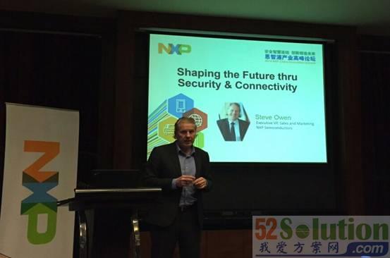 圖1:NXP全球銷售和市場(chǎng)執(zhí)行副總裁Steve Owen介紹NXP的安全互聯(lián)方案