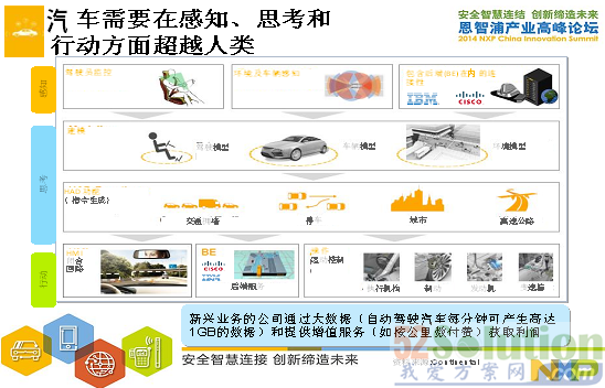 Owen展現(xiàn)智能汽車安全互聯(lián)的美好場(chǎng)景。一個(gè)安全互聯(lián)的智能汽車就是未來(lái)。車有自己的感知系統(tǒng),在思考和行動(dòng)方面都超越了人類,它會(huì)自動(dòng)地去決定該行駛的速度,在感知到前面有個(gè)物體的時(shí)候它會(huì)自動(dòng)停車,或者當(dāng)車感知到前面有交通擁堵的狀況發(fā)生,它會(huì)自然而然的慢下速度,而且會(huì)保持一個(gè)安全距離。在智能汽車的世界里,更多的是采用電子的系統(tǒng),也意味著發(fā)動(dòng)機(jī)的效率也會(huì)更加提高。