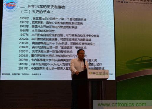 圖4:車載信息服務產(chǎn)業(yè)應用聯(lián)盟秘書長龐春霖在論壇發(fā)表