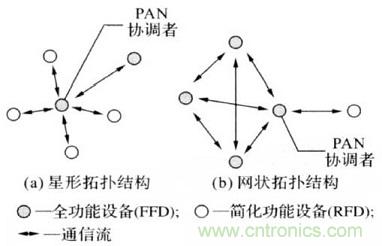 為降低成本,ZigBee標(biāo)準(zhǔn)中定義了兩種類型的設(shè)備:全功能設(shè)備( full function device, FFD)和簡化功能設(shè)備( reduced function device, RFD ) 。