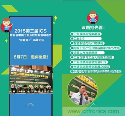【導(dǎo)讀】gongkong®與工信部電子科學(xué)技術(shù)情報(bào)研究所聯(lián)合主辦,由中國儀器儀表學(xué)會(huì)與OPC中國基金會(huì)支持的2015第三屆工業(yè)信息化及信息安全發(fā)展論壇暨首屆中國工業(yè)互聯(lián)與智能制造之“互聯(lián)網(wǎng)+”高峰論壇,將于2015年8月7日在北京歌華開元大酒店召開。