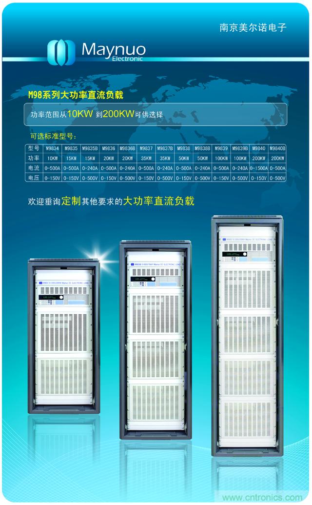 【導(dǎo)讀】近日,南京美爾諾推出多種型號的M98系列大功率直流負(fù)載,可提供選擇的功率范圍是10KW到200KW。如有其他要求,歡迎垂詢??靵砜纯窗?。