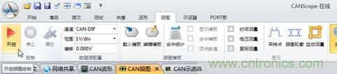 2. 打開(kāi)CANScope,在DUT正常發(fā)送報(bào)文后,如圖 2點(diǎn)擊啟動(dòng),開(kāi)啟設(shè)備的眼圖功能,獲取到如圖 3所示的眼圖波形。