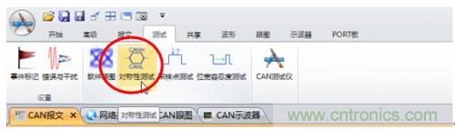 5. 為了精準(zhǔn)測(cè)試CANH+CANL的電壓值,需要使用對(duì)稱(chēng)性測(cè)試功能,如圖6所示,在“測(cè)試”中點(diǎn)擊啟動(dòng)“對(duì)稱(chēng)性測(cè)試”。