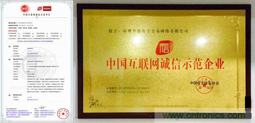 【導讀】近日,華強電子網(wǎng)及旗下平臺華強安防網(wǎng)雙箭齊發(fā),獲得由國家工信部、商務部、國資委、發(fā)改委認證的“中國電子商務誠信龍頭單位”和“中國互聯(lián)網(wǎng)誠信示范單位”兩項國家級資質(zhì)榮譽。