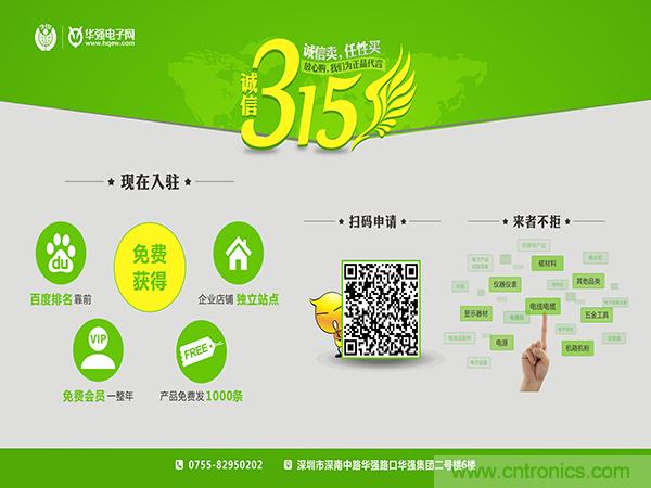 2016年兩會政府工作報告中強(qiáng)調(diào)大型制造業(yè)對物聯(lián)網(wǎng)越來越重視,相關(guān)的電子元器件、連接器的技術(shù)和產(chǎn)品需求將持續(xù)增長。華強(qiáng)電子網(wǎng)是全國電子元器件領(lǐng)域排名第一的垂直B2B網(wǎng)站。依賴政策紅利,響應(yīng)號召,積極行動。在315國際消費者權(quán)益日全面推出免費贈送一年會員的福利。為深耕于電子產(chǎn)業(yè)前線的電子人送上實實在在的315大禮!