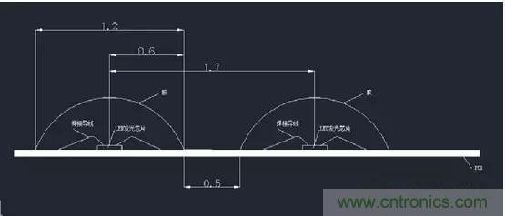 從物理空間尺寸來看,COB封裝在設(shè)計燈珠直徑時不再受制于支架尺寸的限制,如下圖所示: