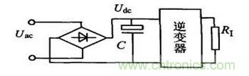 隨著各行各業(yè)控制技術(shù)的發(fā)和要求可操作性能的提高,許多場(chǎng)合的用電設(shè)備都不直接使用通用交流網(wǎng)提供的交流電作為電能來(lái)源,而是通過(guò)各種形式對(duì)其進(jìn)行變換,從而得到各種所需的電能形式。它們的幅度、頻率、穩(wěn)定度及變化方式因用電設(shè)備的不同而不同,如電動(dòng)機(jī)變頻調(diào)速器、綠色照明電源、開(kāi)關(guān)電源等等,它們接入電壓網(wǎng)后,也有一個(gè)交流電源的利用率問(wèn)題。上述產(chǎn)品有一個(gè)共同特點(diǎn)就是:利用橋式整流器和大容量的濾波電容實(shí)現(xiàn)AC/DC轉(zhuǎn)換,由工頻市電獲得直流電壓;雖然交流輸入電壓基本上未出現(xiàn)波形失真,但輸入電流卻不再保持正弦波形,而是呈不連續(xù)的峰值較高的脈沖。如圖1所示的橋式整流濾波電路。只有當(dāng)輸入交流電源Uac的瞬時(shí)值高于電容C的電壓時(shí),整流二極管才導(dǎo)通,Udc基本上維持不變,可見(jiàn)二極管的導(dǎo)通角明顯小于180°,輸入電流波形嚴(yán)重失真。