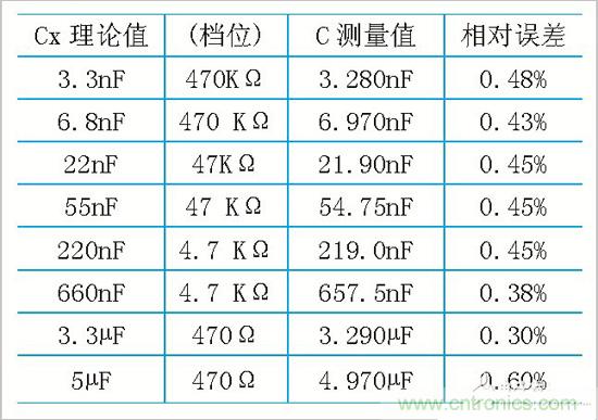 設計的電容測試儀硬件采用555定時器作為信號采集模塊、AT89S51單片機作為信號處理器模塊,軟件采用Keil4.0為仿真平臺,使用C語言編程編寫了運行程序。其具有性能穩(wěn)定、精度高、操作簡單、功耗低等優(yōu)點。經(jīng)測試表明:其可以測試1.0nF-10.0uF范圍的電容,誤差小于0.5%。誤差產(chǎn)生主要原因與電路元件參數(shù)、測試環(huán)境、測試方法等因素有關。
