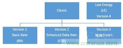 通過把模塊進一步劃分成不同版本,藍牙SIG簡化了這一前期決策。藍牙技術(shù)版本分為經(jīng)典版本和低能耗(LE)版本。經(jīng)濟藍牙版本1、2和3是為數(shù)據(jù)傳輸速率優(yōu)化的。在經(jīng)典版本中,它分成基本速率(BR)、增強數(shù)據(jù)速率(EDR)和高速。低能耗藍牙則把更多的重點放在簡單的信息傳輸上,同時盡可能延長電子器件的續(xù)航時間。