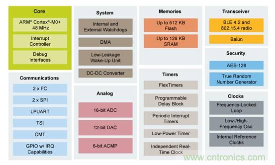 圖2,NXP KW41多協(xié)議無線MCU,可以同時運行BLE和Thread兩套協(xié)議棧