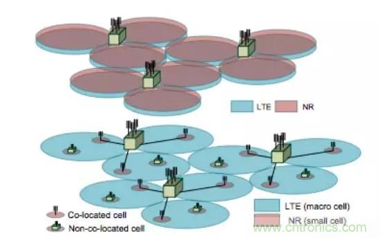 5G基站(gNB)也可作為微站,與現(xiàn)有的LTE基站(eNB)共站或非共站部署,解決室內(nèi)或熱點覆蓋。