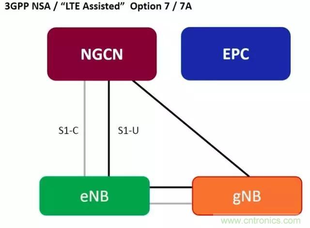 這次凍結(jié)的3GPP R15 NSA(5G NR非獨立組網(wǎng))核心標準部分內(nèi)容:,即沿用4G核心網(wǎng)(EPC),以4G作為控制面的錨點,采用LTE 與 5G NR雙連接的方式,利用現(xiàn)有的LTE網(wǎng)絡部署5G,以滿足領先運營商快速實現(xiàn)5G覆蓋的需求。
