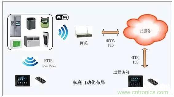 從上圖可看出,家庭自動化系統將嵌入式微控制器技術、無線連接、接入網絡融合為一體。Apps軟件能夠使用戶發(fā)現家里的設備,予以設置,或者創(chuàng)建一個動作加以控制。