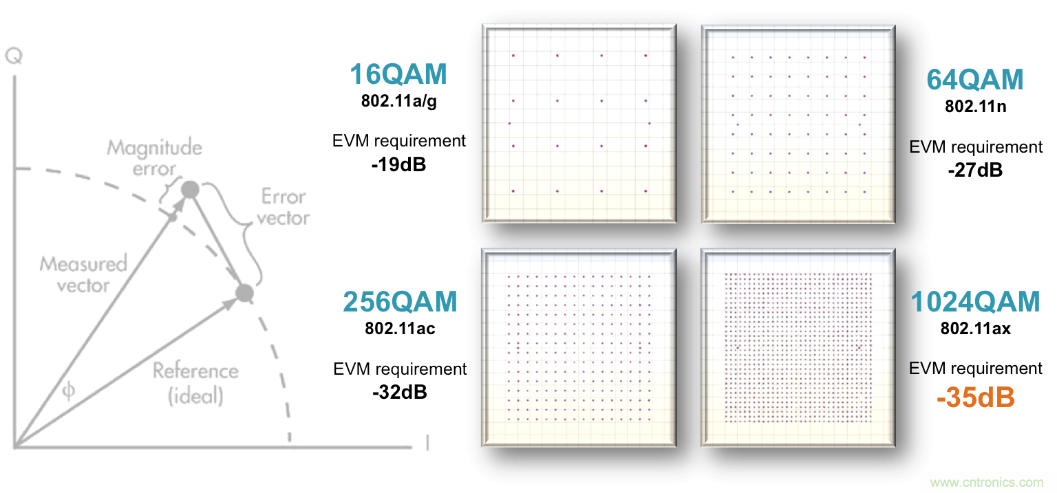 圖4. 不同調(diào)制階數(shù)的EVM指標(biāo)要求